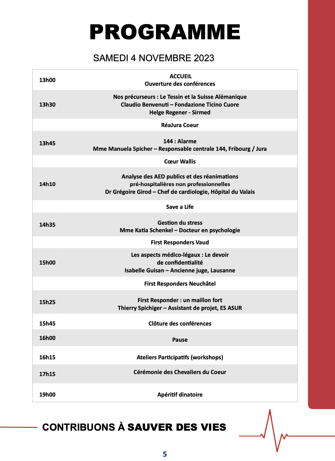 Dès 13 heures: Conférences, workshops et démos, dès 17h15 remise des Chevaliers du Coeur.