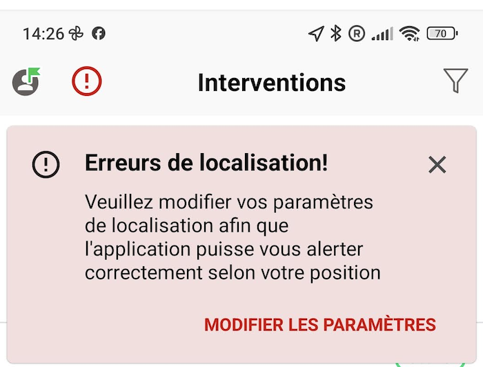 Un nouveau message d'information s'affiche et aide l'utilisateur à modifier correctement les paramètres de localisation s'ils n'ont pas été définis pour une utilisation optimale de l'application.
